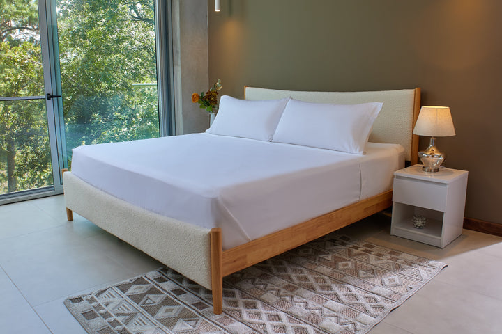 Set de sábanas 100% algodón de 300 hilos hipoalergénicas, suaves y transpirables.
