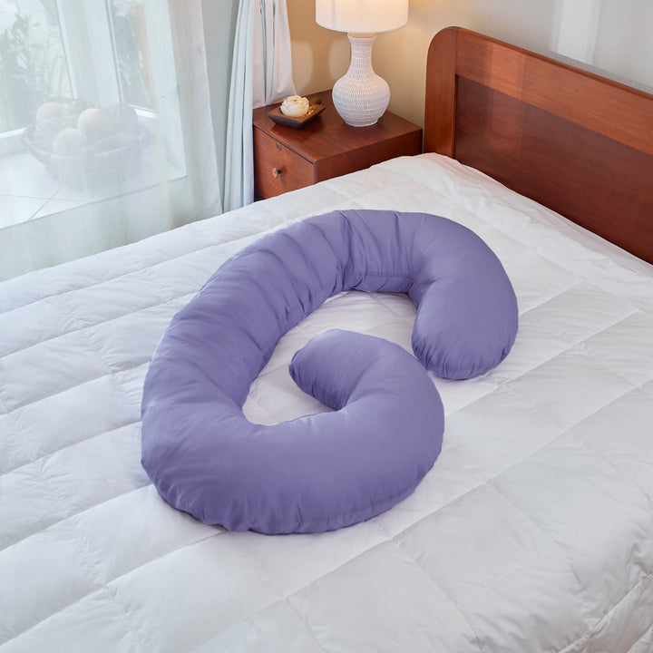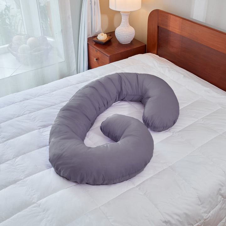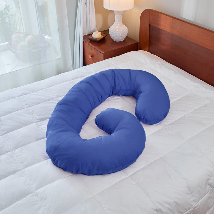 Almohada tipo C, especial para embarazadas, brinda múltiples posiciones para dormir cómoda. 50% algodón y 50% poliéster, Tela hipoalergénica.