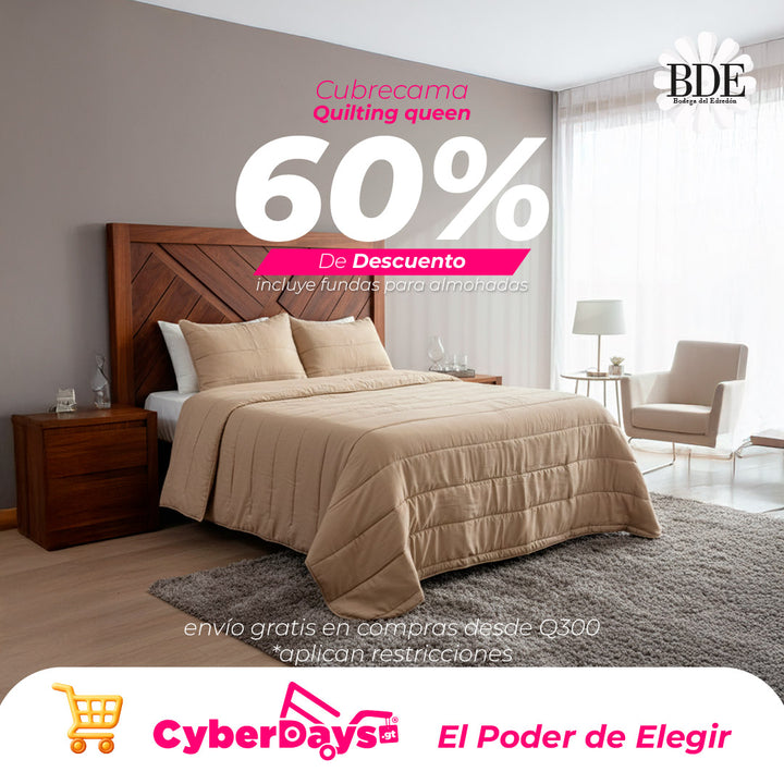 Elegante cubrecama elaborado con tela poliéster confeccionado con tecnología quilting de alta calidad, relleno ligero doble costura.