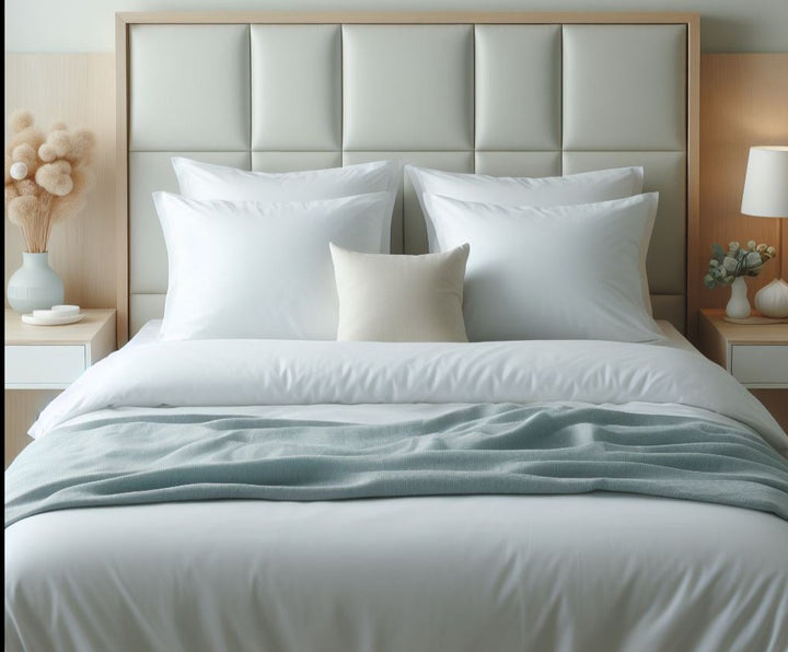 Funda de Duvet blanca 100% algodón de 300 hilos Incluye una funda de edredón y dos sobrefundas.